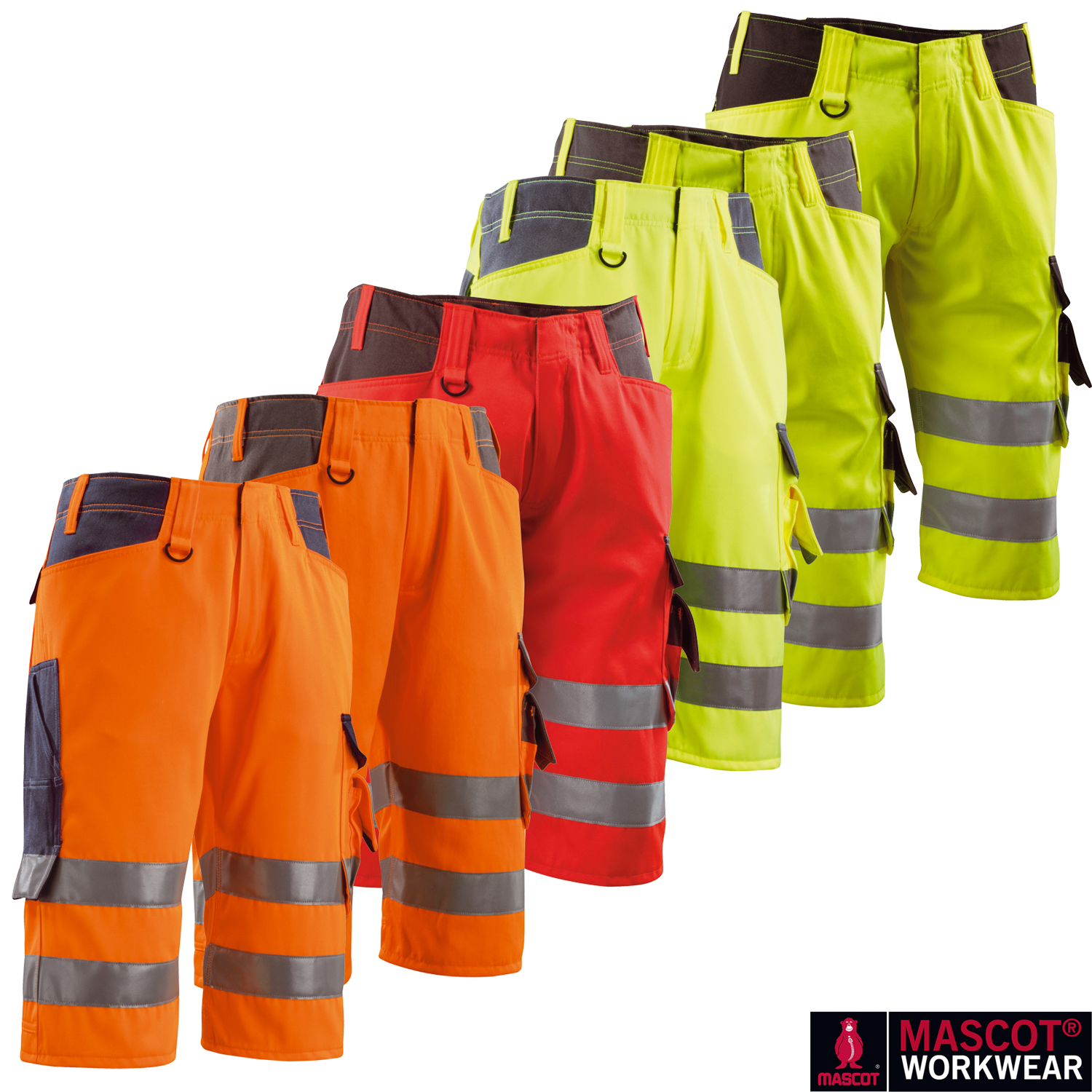 MASCOT Luton 15549, Warnschutz Dreiviertelhose, MASCOT Warnschutzhose, EN ISO 20471 Hose, High-Vis Arbeitshose, Arbeitskleidung Warnschutz, PSA Hose, Industrie Dreiviertelhose, Bau Arbeitshose, schmutzabweisende Arbeitshose, ergonomische Handwerkerhose, MASCOT Workwear, Hi-Vis Gruppe X, Warnschutz Sommerhose